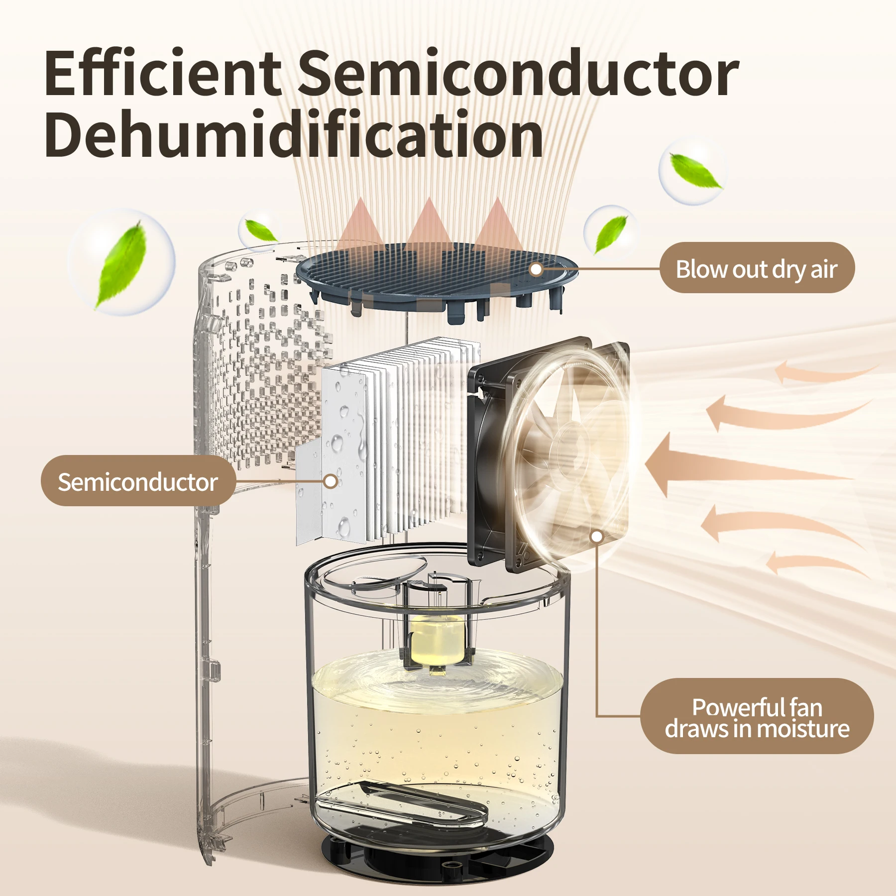 Fast & Quiet Dehumidifier for Home: Removes moisture quickly and quietly with advanced semiconductor technology. 42oz water tank for ample storage. Sleek design, easy-to-use controls, and healthy living environment benefits. The quiet dehumidifier is ideal for bedrooms, living rooms, RVs, wardrobes, closets, trailers and more. (NOT suitable for basement)