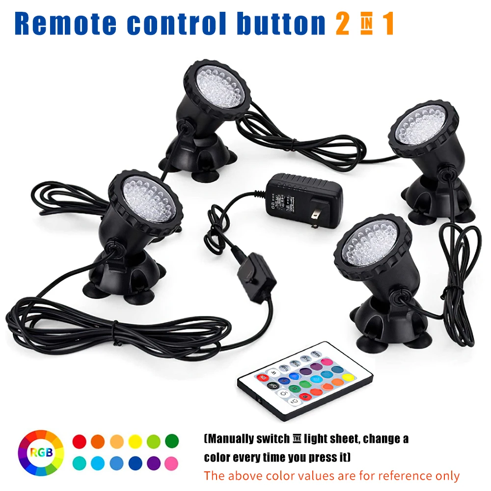 36LEDs RGB Underwater Spotlight 12V IP68 Waterproof Fountain Fish Tank Swimming Pool Pond Aquarium Garden Lamp