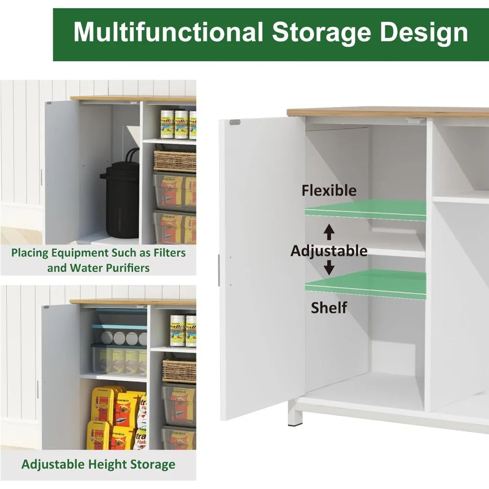 【40 Gallon Fish Tank Stand】The top dimensions of the fish tank stand are 35.4"L x 17.7"W, designed to accommodate a 40 gallon aquarium with a weight capacity of 440 pounds. However, given the variety of aquarium sizes in the market, it is recommended to measure your tank dimensions before purchase to select the appropriate aquarium stand for correct installation 【Sturdy and Stable】Stability is crucial for a fish tank. Compare with others, we use more thicker board( 1.5mm, other supplier is 1.2mm) and more thicker metal frame, provides better stability and capacity 【Orderly Storage】This fish tank with stand easily keeps everything organized. The Left built-in cabinet stores fish food, cleaning tools, and other accessories while the adjustable shelves help accommodate items of various sizes. The right two shelf can hold other household items, which can save you a lot of space and make it easy for you to access the items you need 【Convenient and Practical】The Fish Tank Stand includes a built-in power strip with 2 outlets & 2 USB Ports, which provides convenience for charging heater rods, filters, LED lights, and other devices. The breeder tank table stand is not only suitable for placing aquariums in homes, offices, and study rooms but can also be used as a decoration in living rooms and bedrooms 【After-sales Service】If you encounter any issues, please feel free to contact us through Amazon, and we will provide a satisfactory solution to meet your needs
