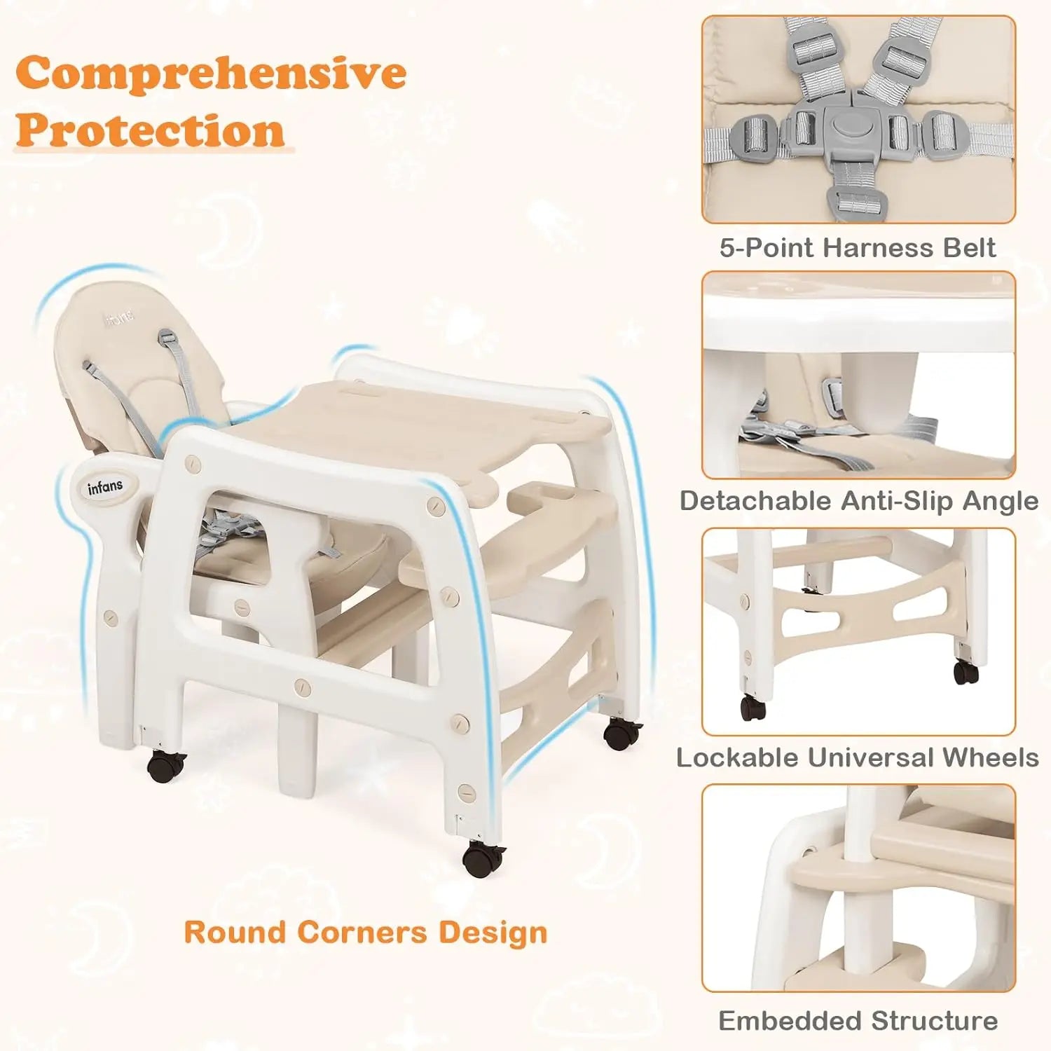Hign-concerned 5-in-1 Baby High Chair grows with your child, delivering comfort, safety, and versatility from infancy through early toddler years.