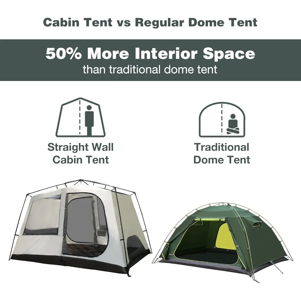 6 Person Tent for Camping Parties, Easy Setup Large Waterproof Windproof Family Cabin Tents with Porch, 10'X7'X78in(H)