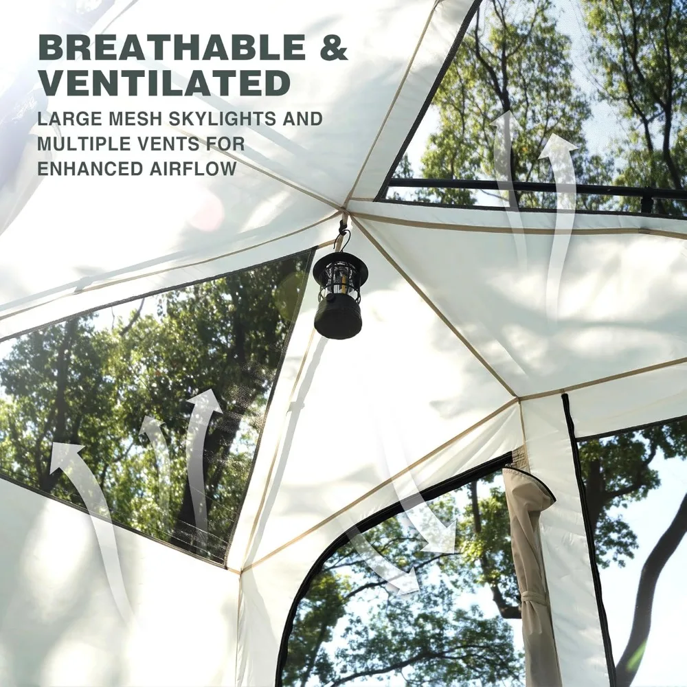 - Excellent Ventilation & Insect Protection: Stay cool in warm weather with the large mesh ceiling and multiple mesh windows/doors, ensuring continuous airflow. The dense netting not only lets in fresh air and natural light but also forms a reliable barrier against mosquitoes, flies, and other tiny pests, allowing you to enjoy peaceful nights surrounded by nature without any unwelcome guests.