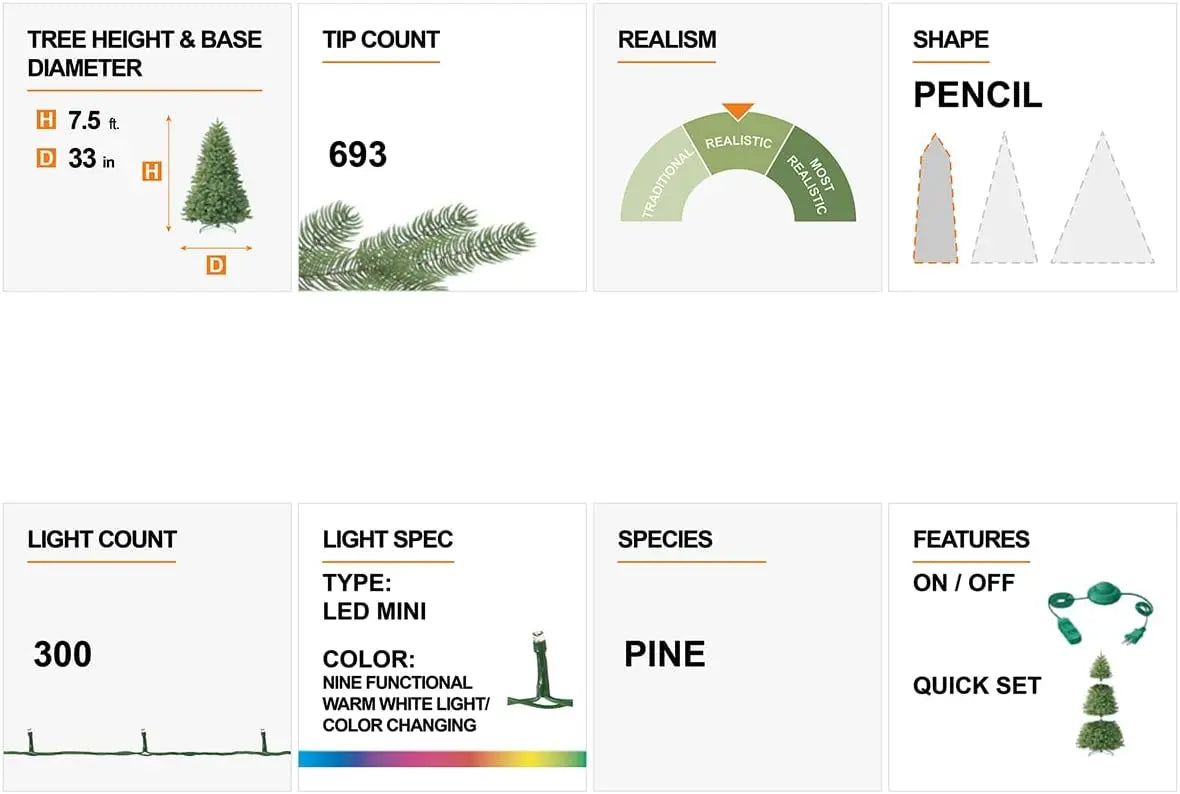 - It's the perfect size for your living space at 7.5 ft tall with a 2.75 ft base, delivering inviting festive glow that enhances your room’s holiday spirit.