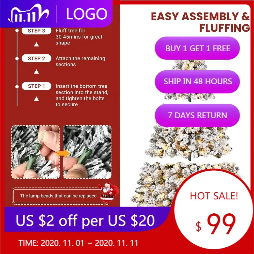 Bring snow-kissed holiday magic to your space with the XMSJ Flocked Spruce Christmas Tree, standing about 7 feet tall and ready to glow for you.