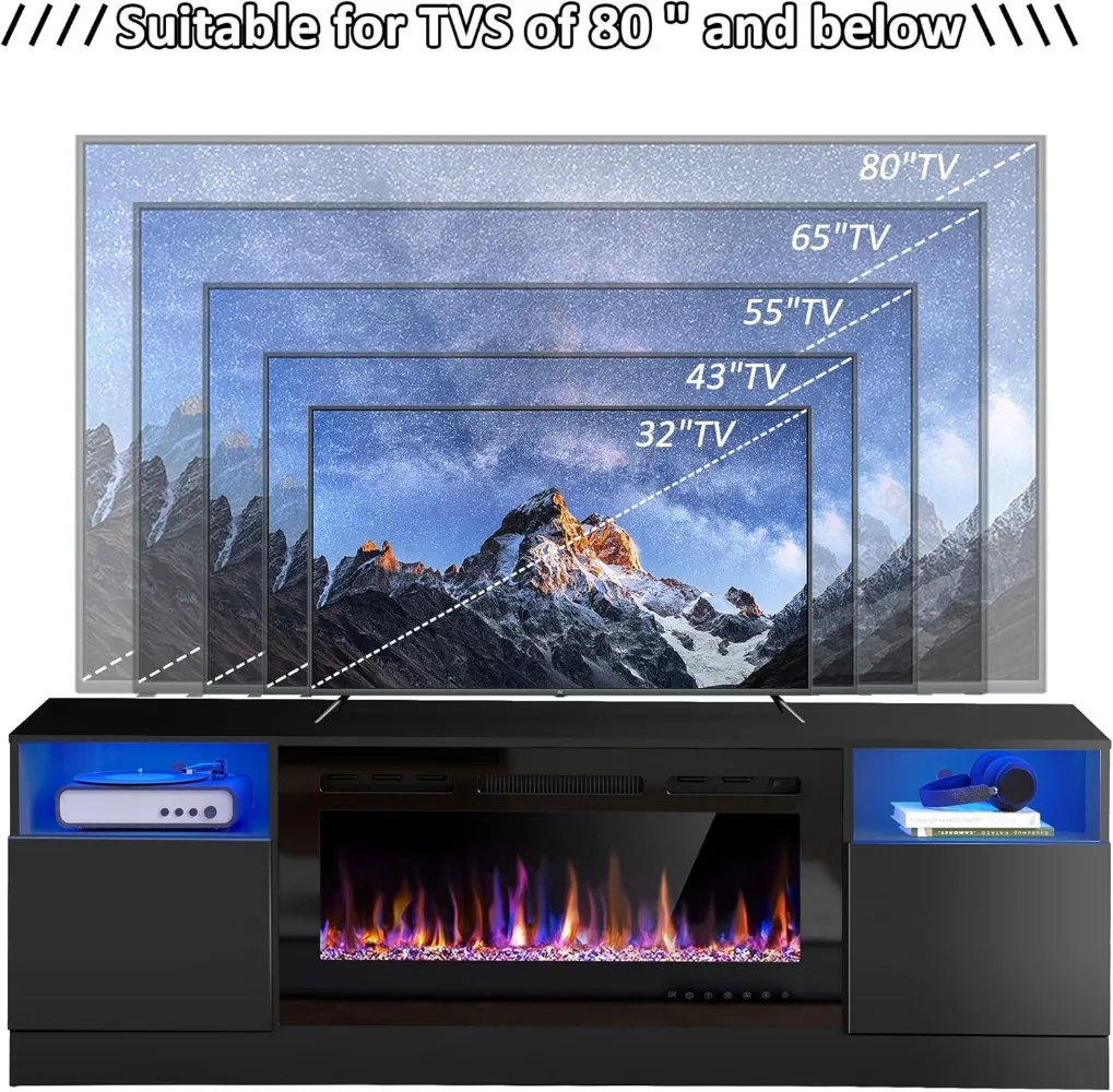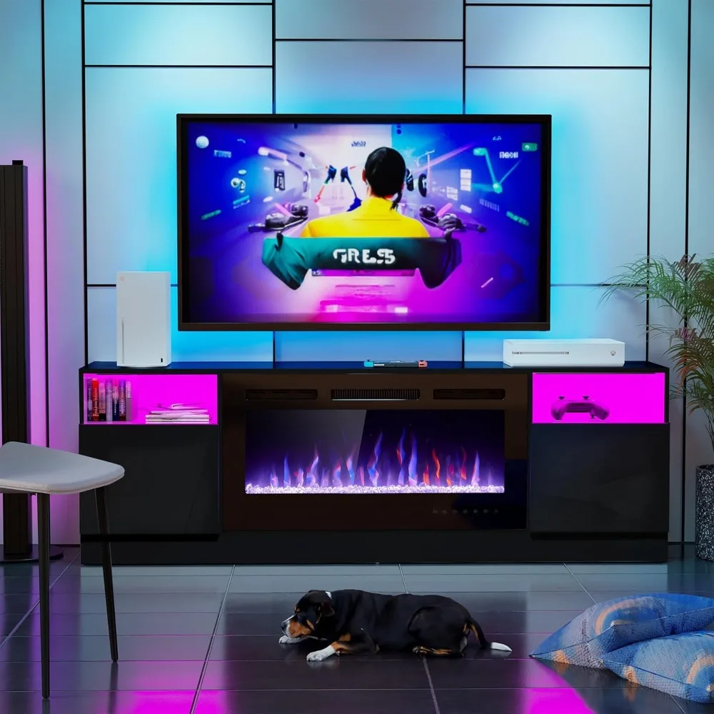 70" Fireplace TV Stand for TVs Up to 80" with 36" Electric Fireplace, TV Console for The Living Room, Entertainment Center