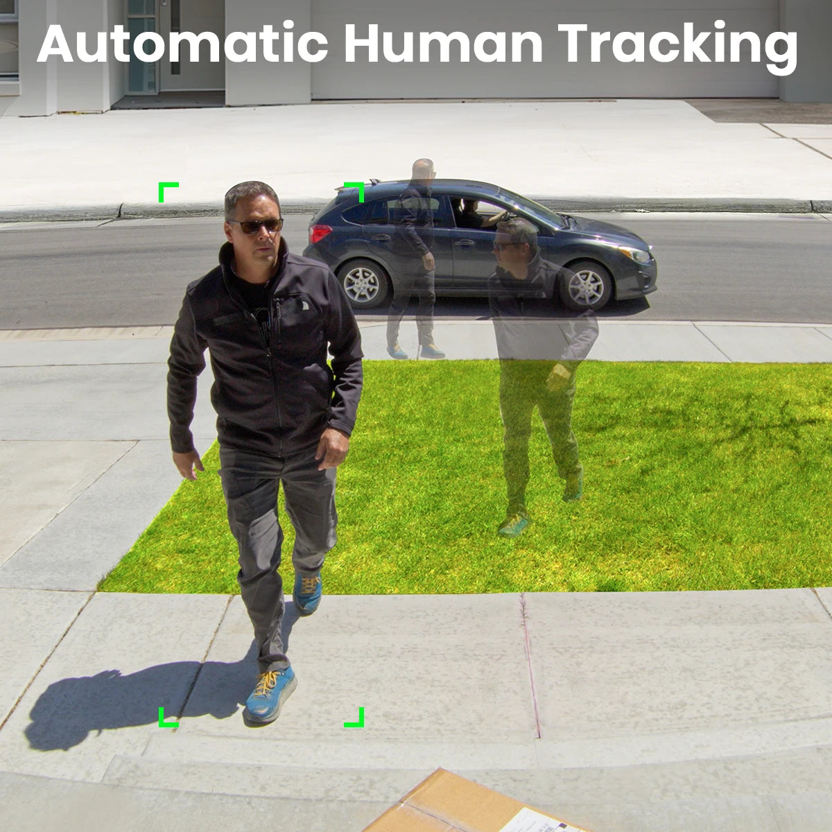 When human motion is detected, the solar security cameras wireless outdoor automatically focuses on and tracks the moving people to record a more detailed event. Enjoy peace of mind knowing that your property is under great surveillance.