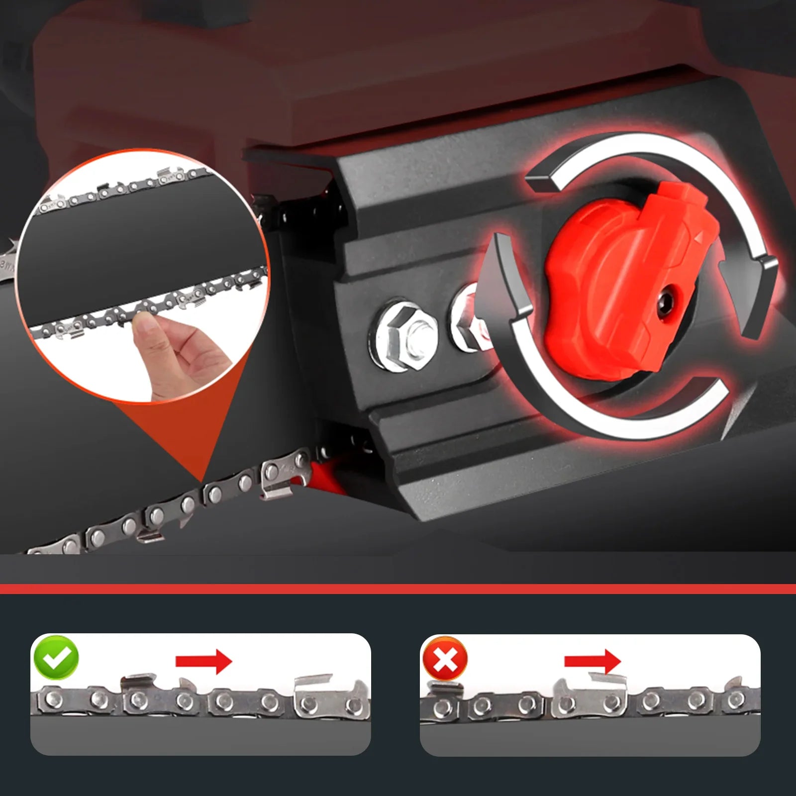 - Brushless technology reduces wear and heat, while automatic oiling and an easy tension knob keep the chain lubricated and running smoothly.