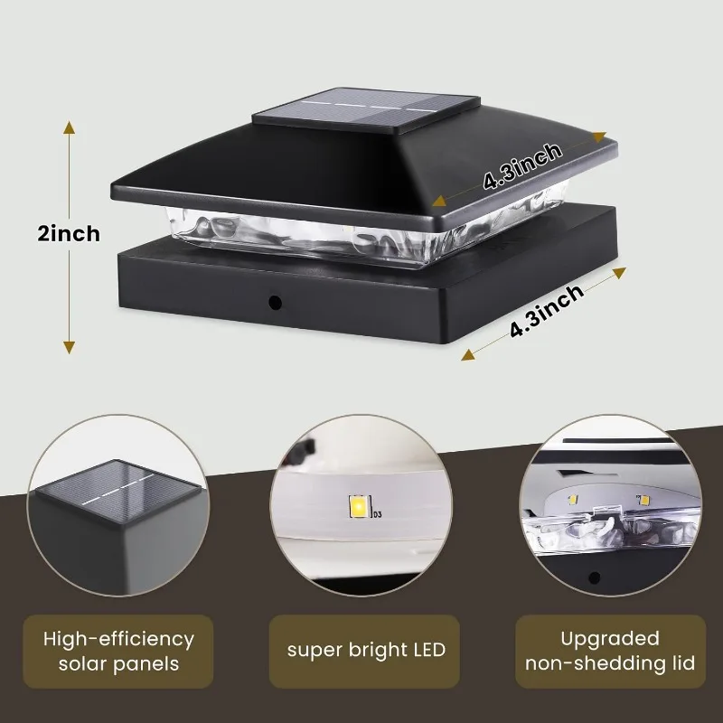 [Easy Installation] These solar deck post lights are suitable for 4x4 wooden posts and 4x4 vinyl posts. To install these 4x4 Waterproof Black Fence Post Lights, you just need to screw into the wooden/vinyl post and remove the tab on the light cover. NOTE: When you are mounting on a 4x4 vinyl post, remove the 3.5x3.5 adapter built into the base!