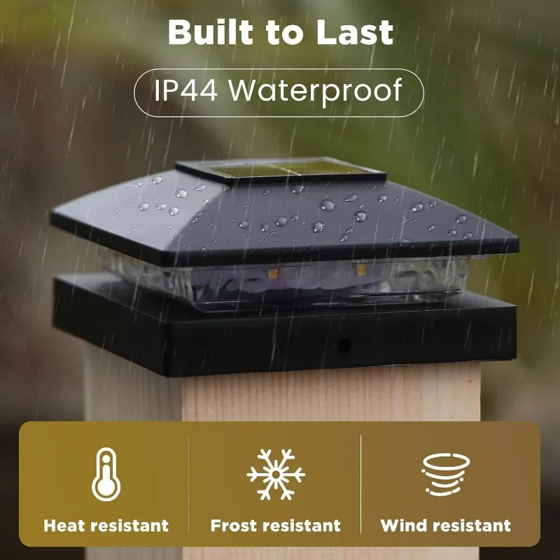 [Weater Resistant] Solar outdoor lights for fence and deck is made of IP44 waterproof material, which can endure high temperature, heavy rain, wind and snow. Whenever night falls, the waterproof solar powered fence post lights will automatically light up rain or shine.