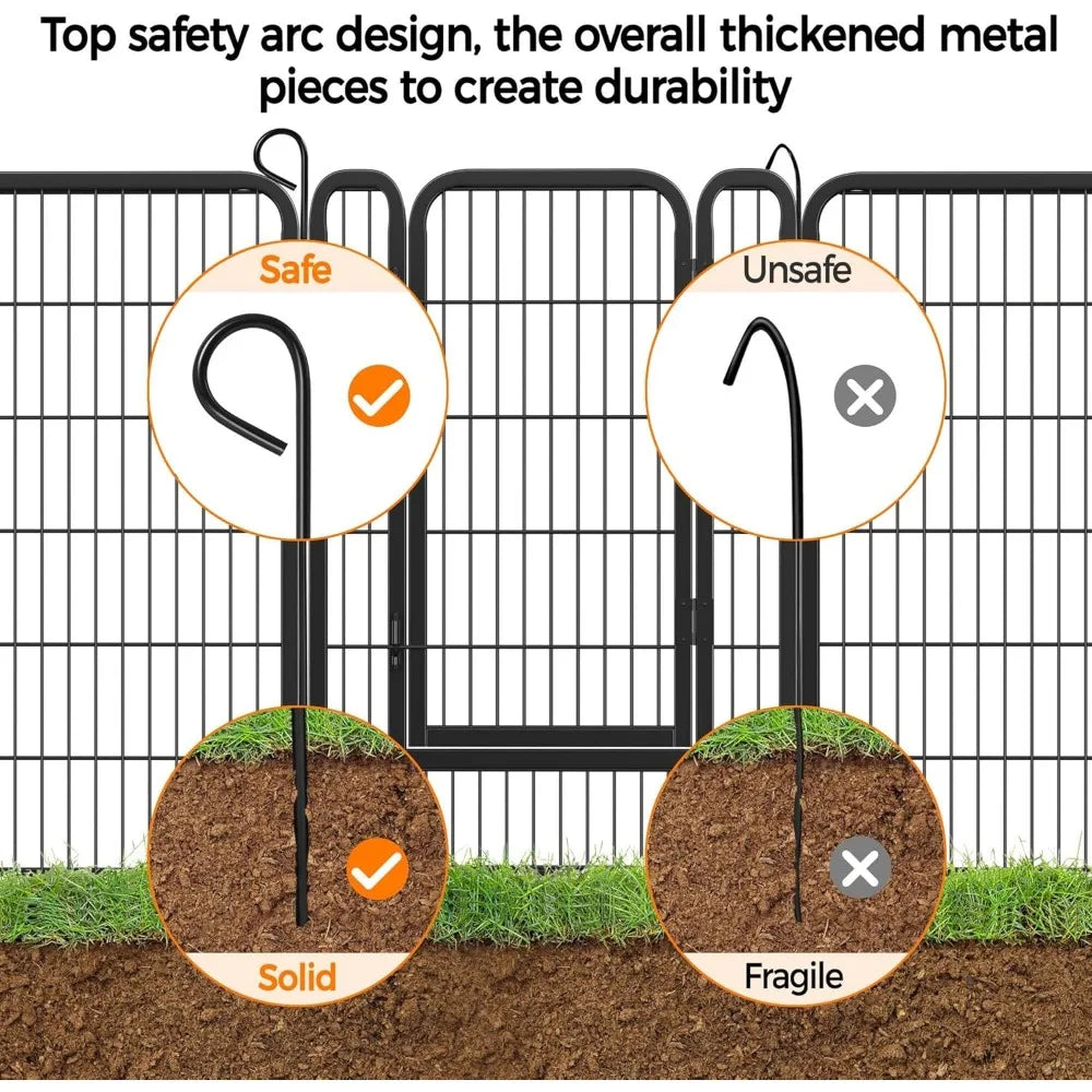 - Heavy duty: The dog playpen is made of metal with an electro-coated finish. Recommend setting this playpen on flat ground. The metal playpen is freestanding, however, if you have a naughty puppy, you might secure the playpen to the ground firmly for double safety