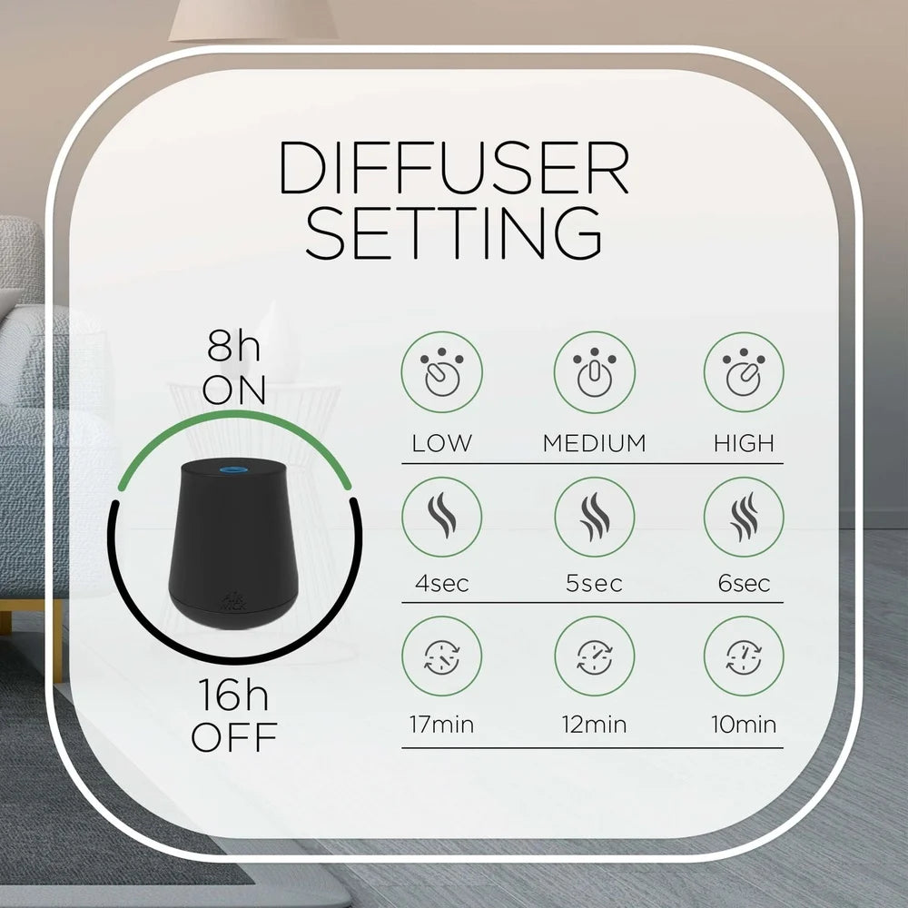 - Fine-tune the scent with adjustable mist cycles to match your room—low, medium, or high intensity.