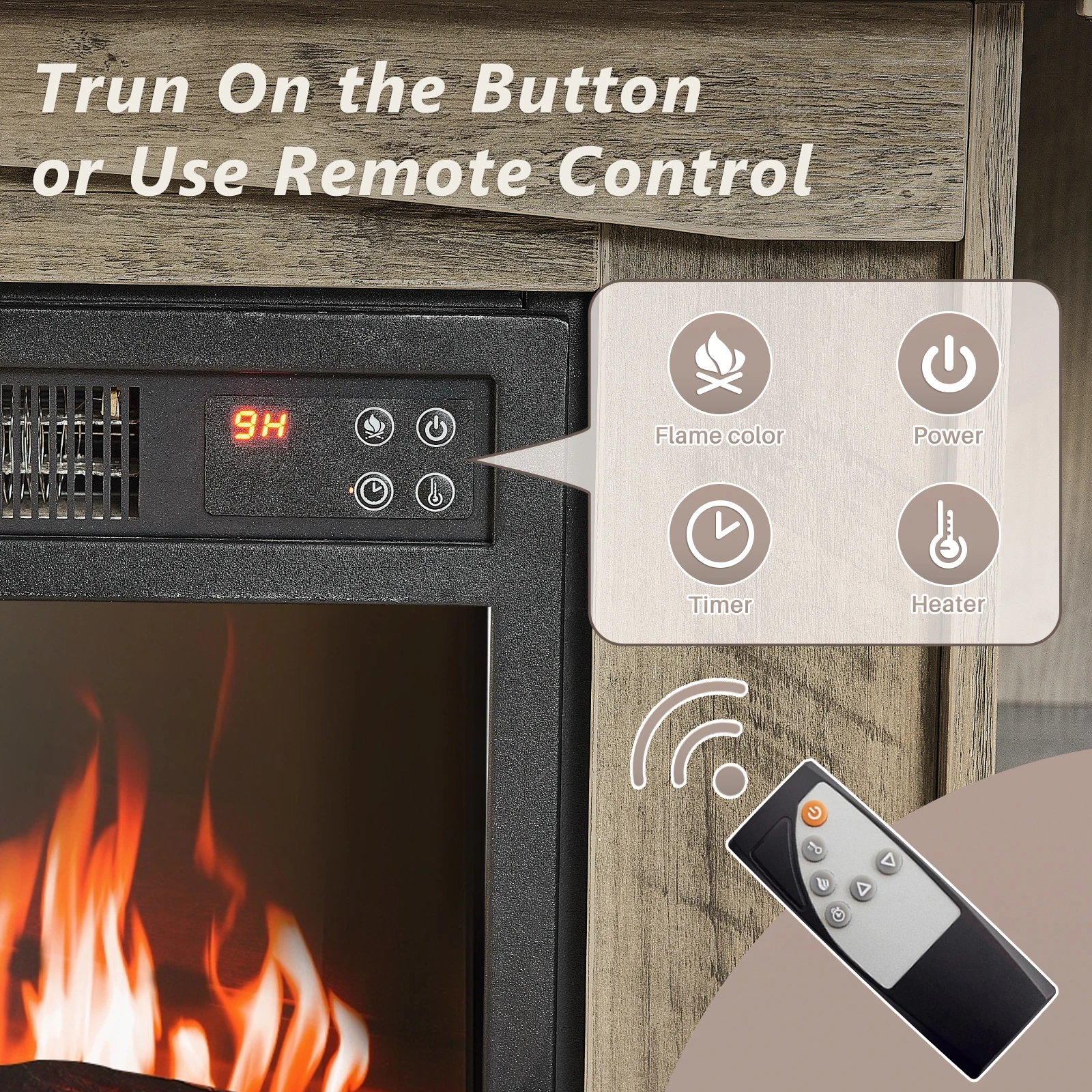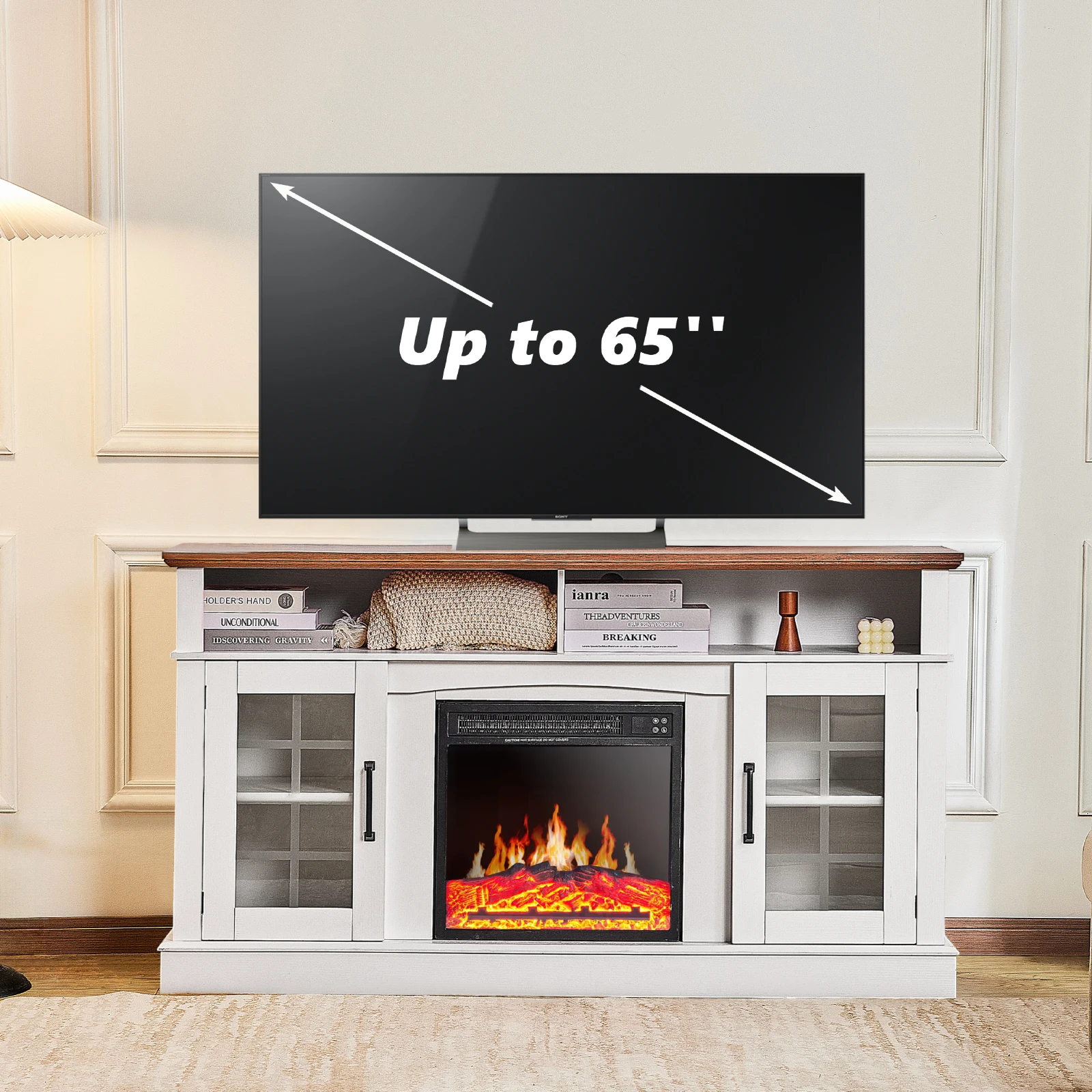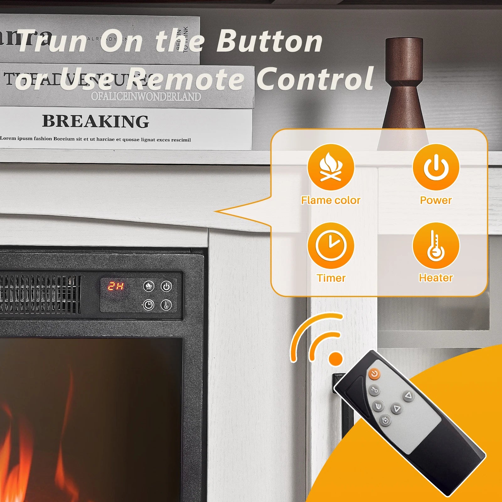 Fireplace TV Stand for 65" TV Media Entertainment Center Console Table w/ 18'' Electric Fireplace Remote Control Storage Shelves