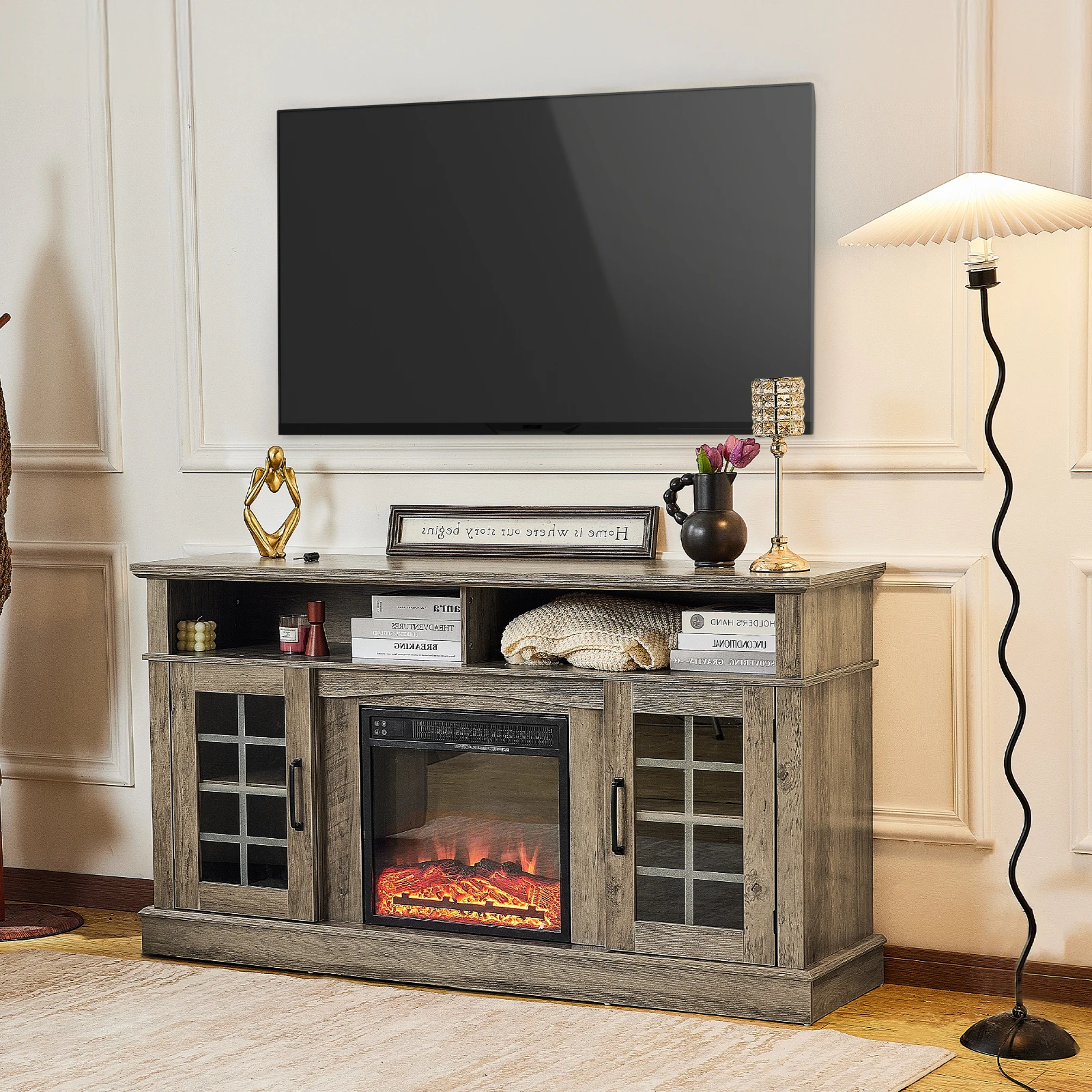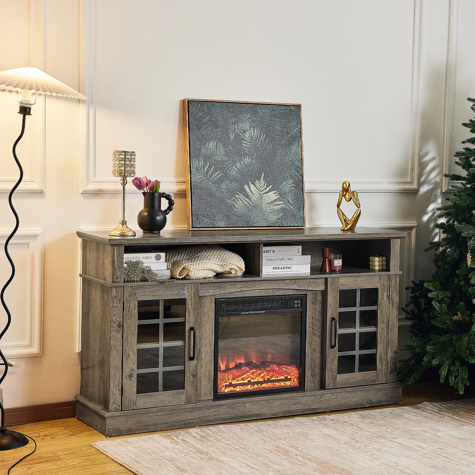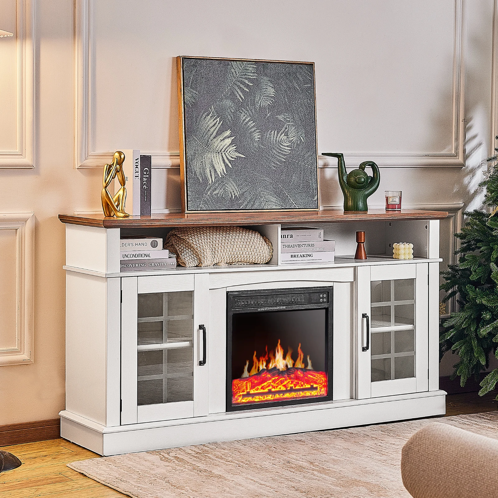 Fireplace TV Stand for 65" TV Media Entertainment Center Console Table w/ 18'' Electric Fireplace Remote Control Storage Shelves
