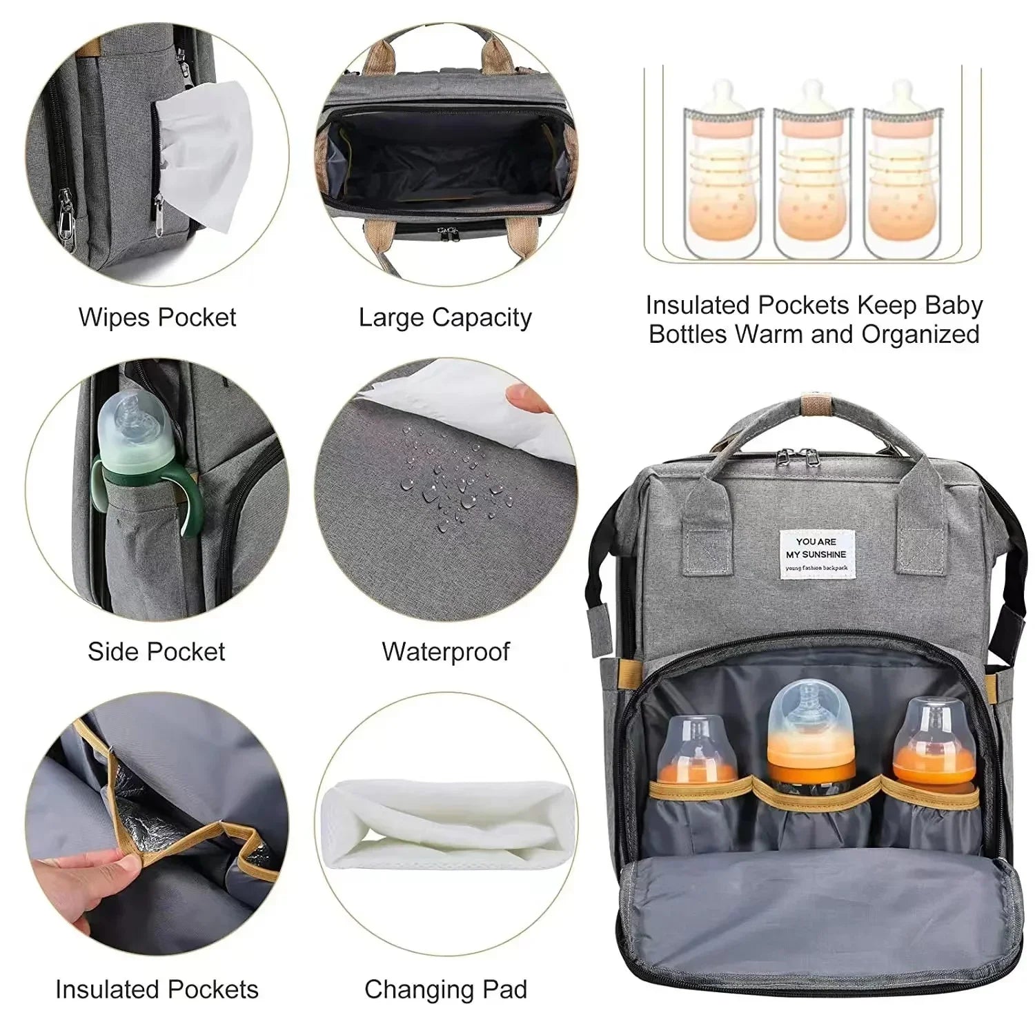 - An insulated pocket keeps milk, formula, or snacks at the right temperature, while secure zippers protect every item.