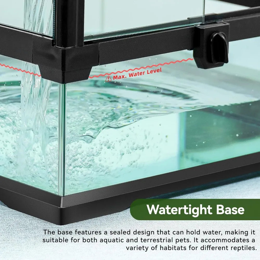 Leopard Gecko Reptile Terrarium Front Opening CrystalGlass Enclosure Watertight Base