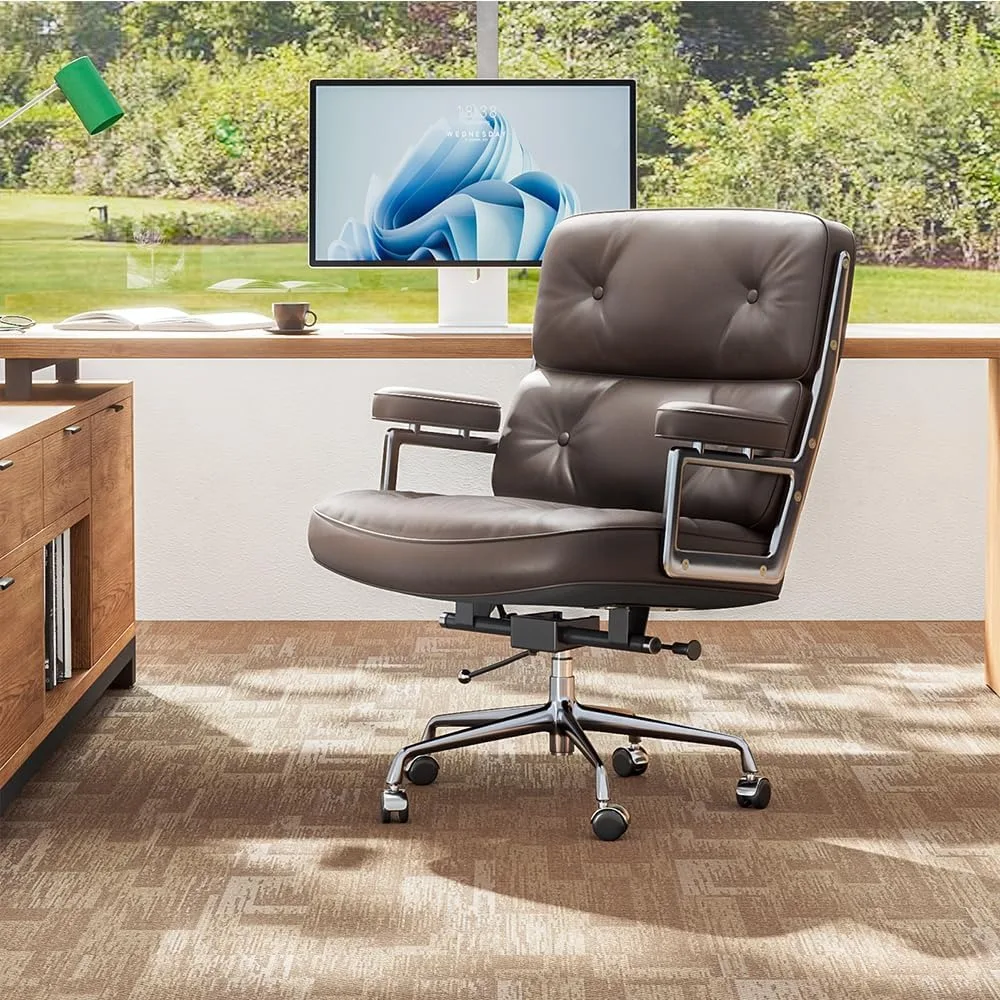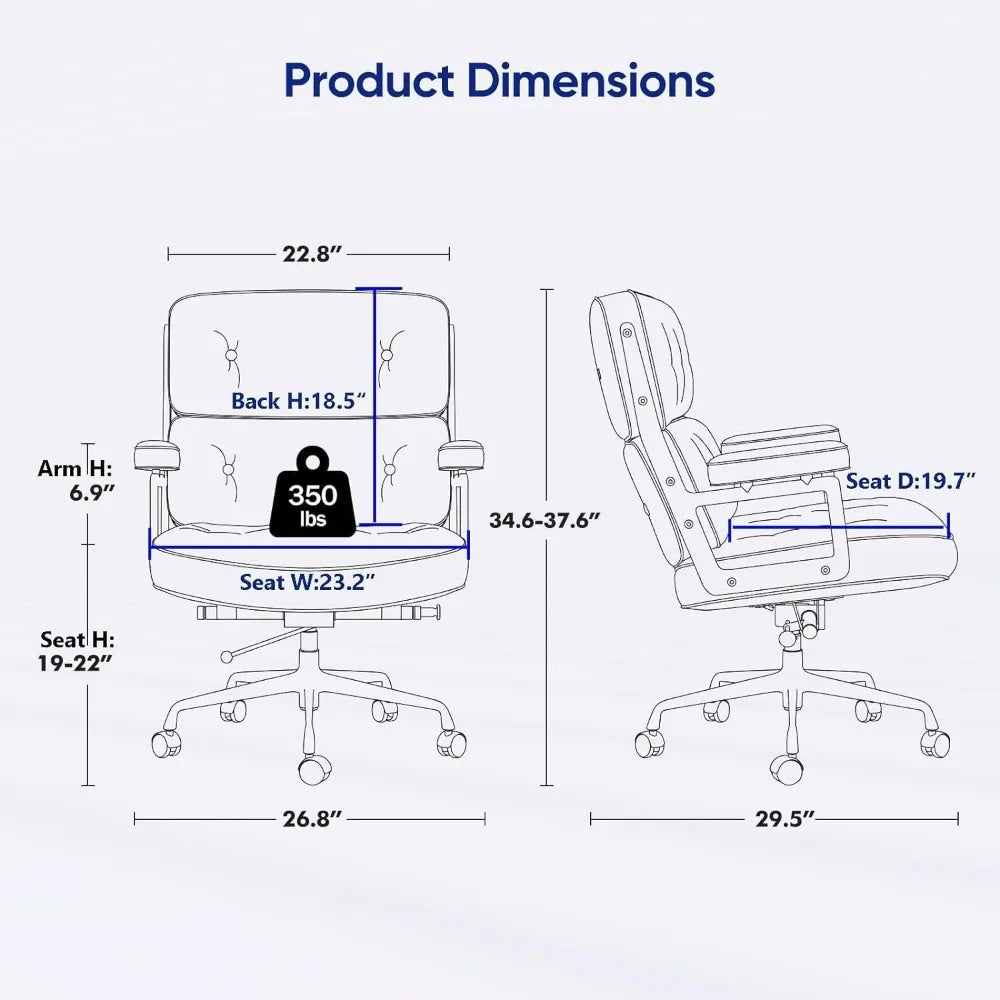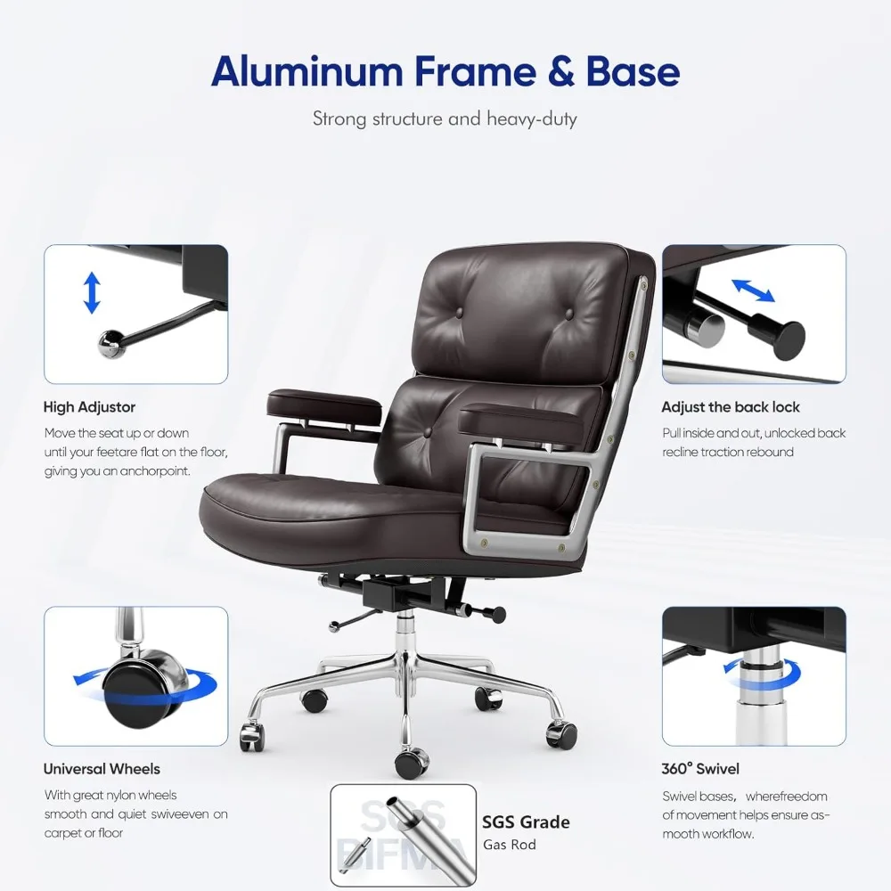 - 🎁Comfortable and Ergonomic Design: This office leather chair is perfect for long hours of sitting. It uses Top Grain Leather, and Aluminum, and the executive office chair's sleek and ergonomic design will complement the home, office, conference room, etc.
