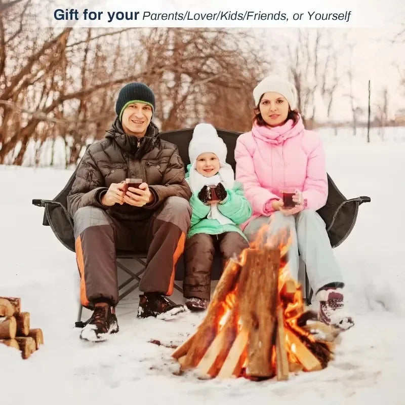 Home.Heated Double Camping Chair, 2-Person Folding Chair with 12V 16000mAh Battery Pack, Heated Portable Loveseat Chair