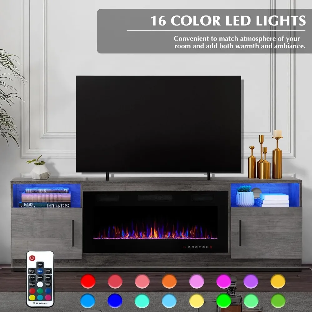 Lemberi Fireplace tv Stand with 36 inch Fireplace Up to 80" TVs,LED Light Entertainment Center and Storage, 70" Modern Wood Medi