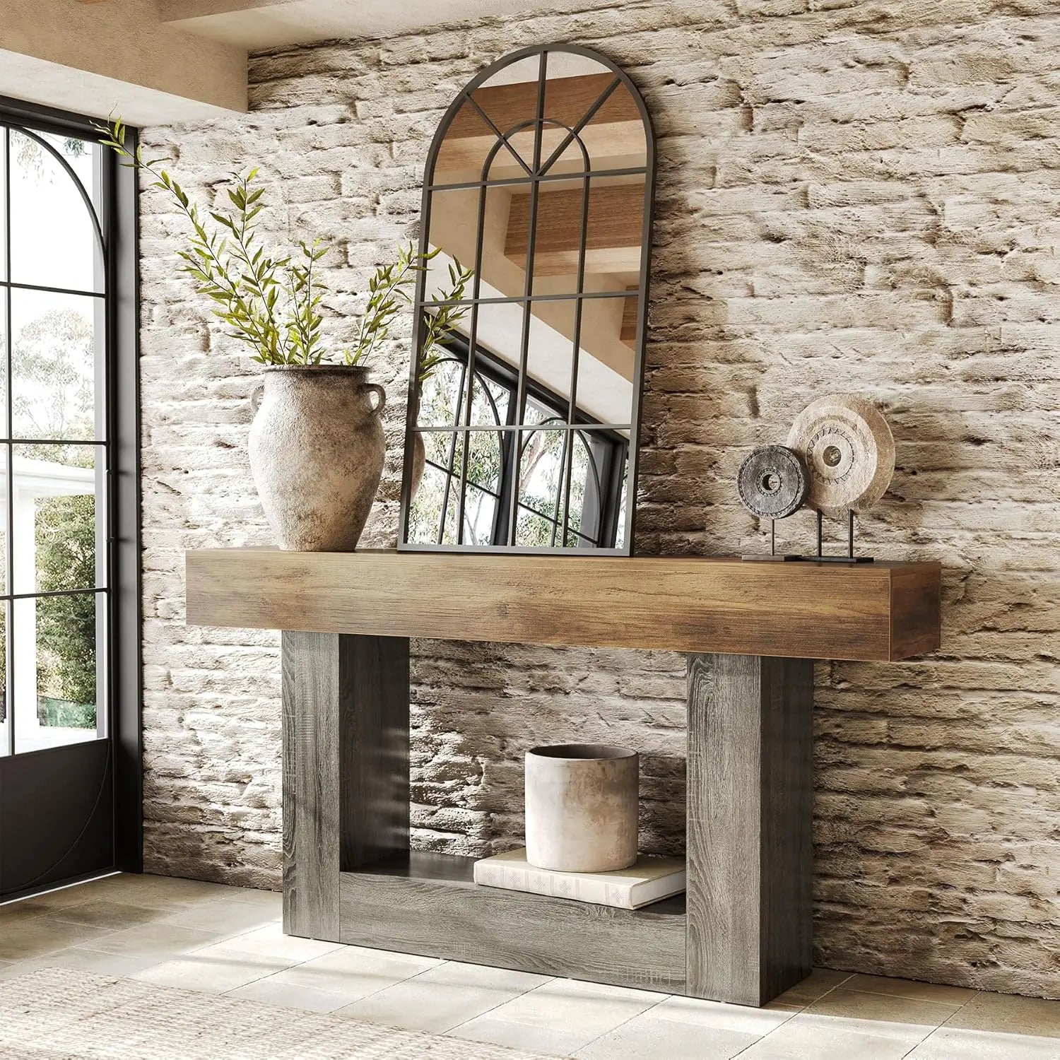LITTLE TREE 63 Inches Long Console Table, 2-Tier Farmhouse Sofa Table Behind Couch for Living Room