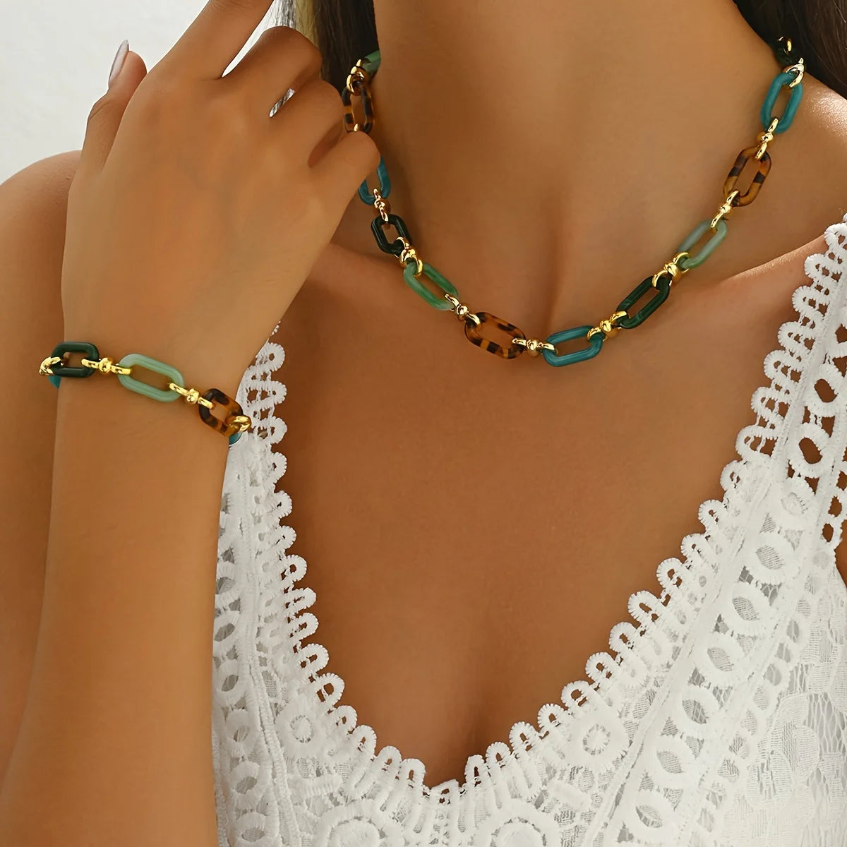 Fine Or Fashion Resin Jewelry Set Necklace Bracelet Boho