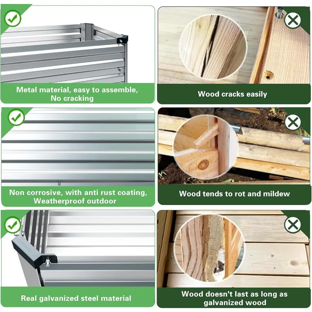 - Stable and durable: raised garden beds outdoor for vegetables, garden beds are made of stainless steel, with all surfaces galvanized to effectively prevent corrosion, making the product more durable and long-lasting.