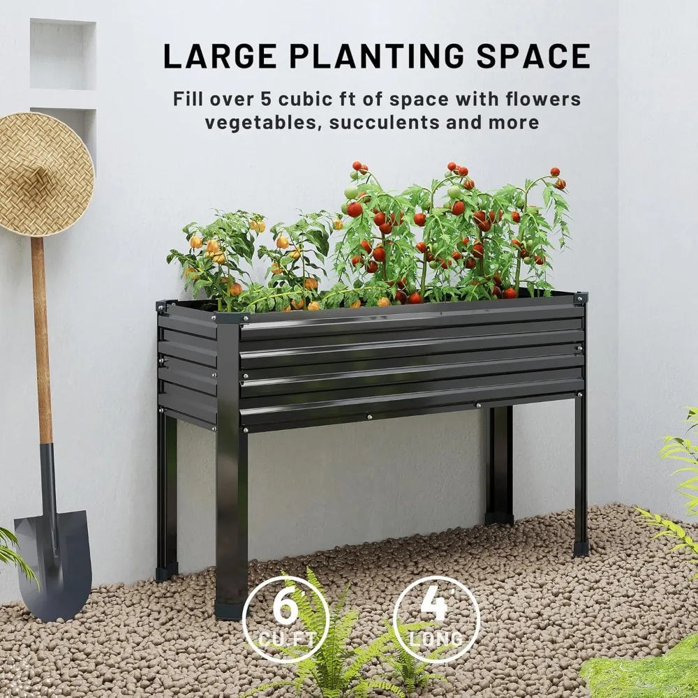 - Spacious planting space: Raised garden bed with legs, 48x18x32 inches, 300 capacity