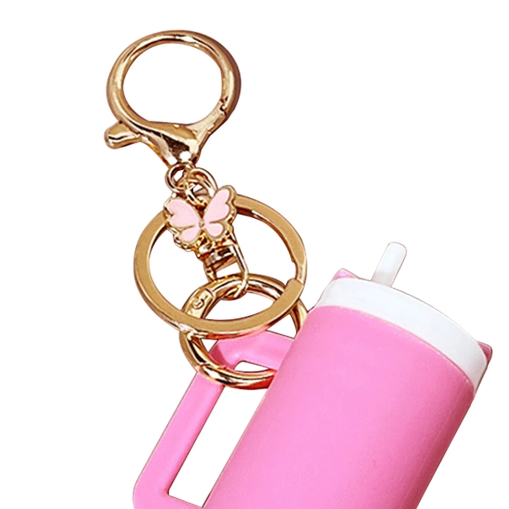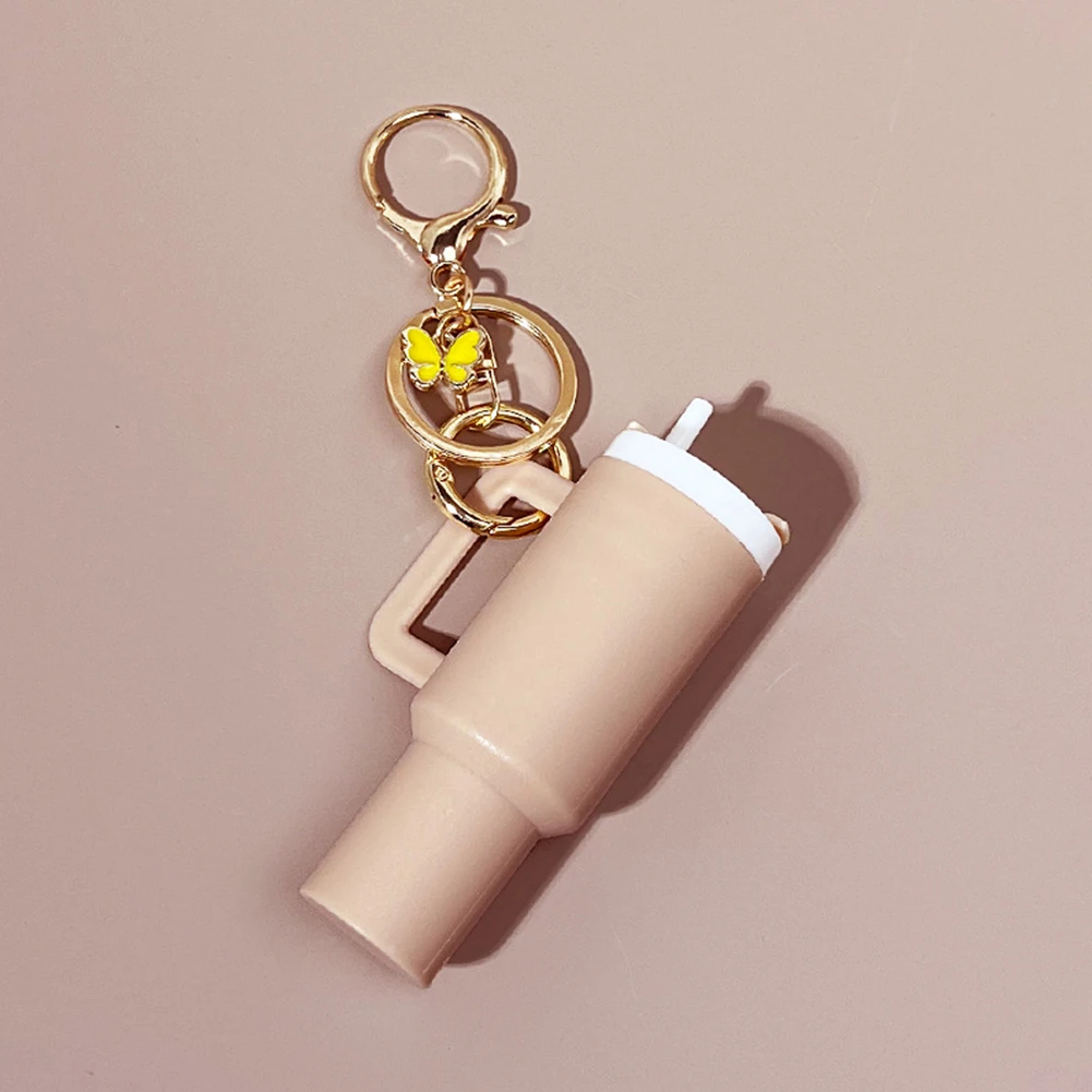 Mini Cup Keychain Butterfly Chapstick Holder Keychain Handbag Charms Key Ring for Stanley Water Bottle Accessories Features: Specification: Origin: Mainland China Main Material: PVC + Alloy Color: Pink, Blue, Black, Yellow, White, Purple, Red Size: About 10cm (3.94in)*5cm (1.97in)*3cm (1.18in) Net Weight: About 27g Note: 1*Mini Cup Keychain |