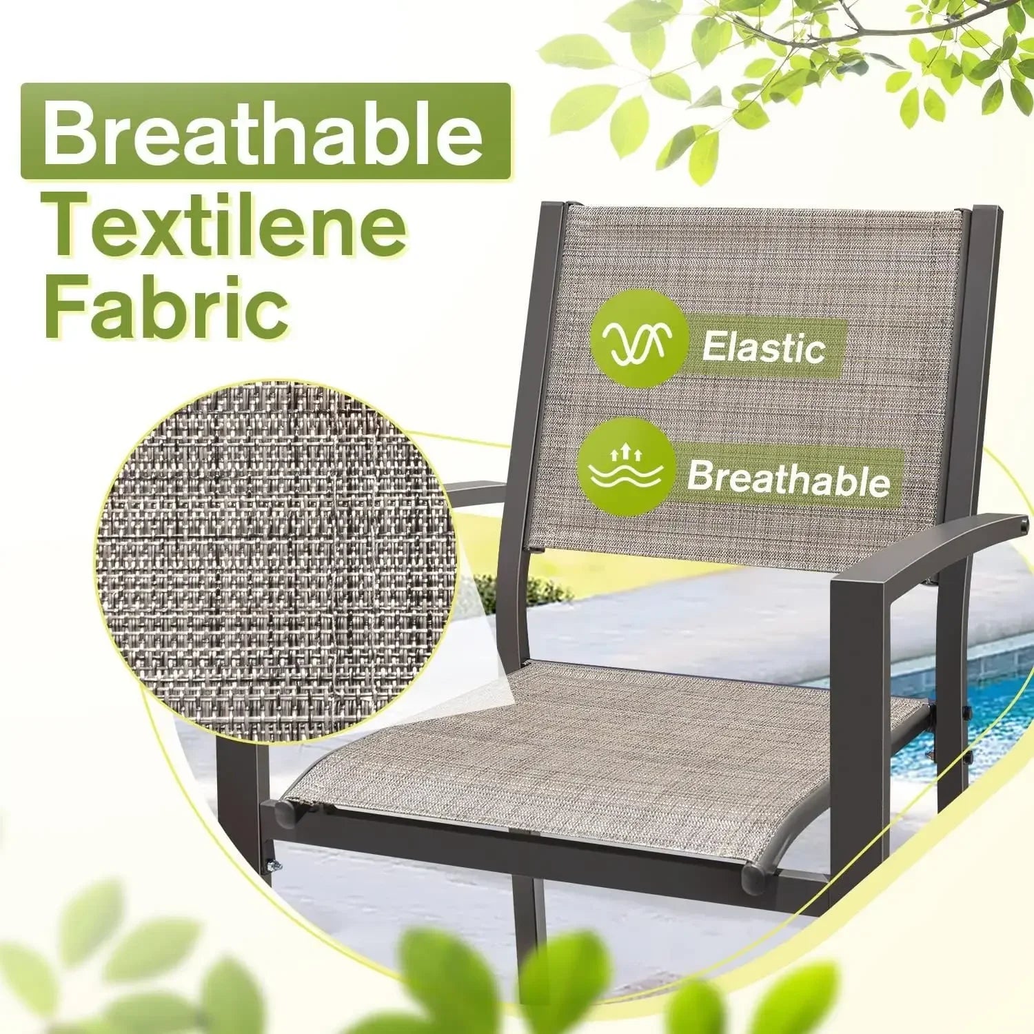 - Powder-Coated Steel: This outdoor dining set are made of high-strength steel and double-layer construction to ensure stability and weighing capacity. The steel is wrapped by a special powder coating that features excellent weather and corrosion resistance. Premium materials ensure that this furniture set will last for a long time