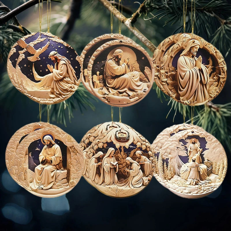 Jesus Christmas Tree Ornaments Rustic Jesus Ornaments Mini Round Wooden Signs for HomeFeatures: