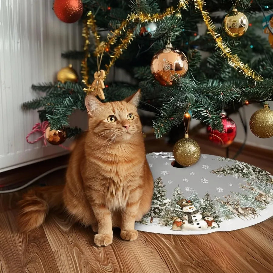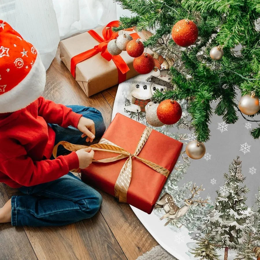 Add festive charm to your holiday setup with the Electronic Snowman Christmas Tree Skirt Reindeer Snowflakes Decor.