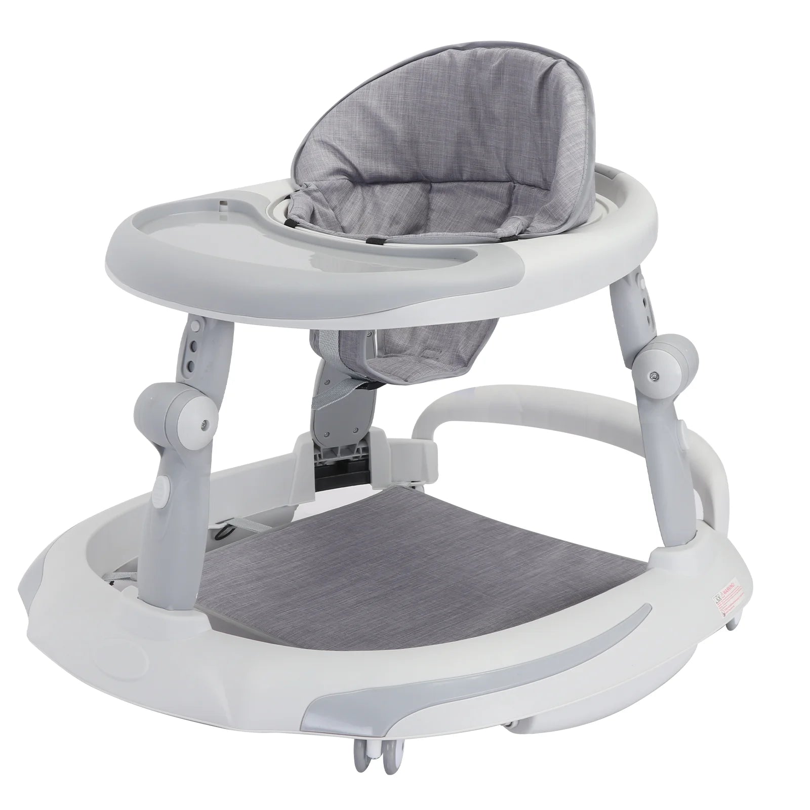 Baby walker made of original PP plastic, BPA free and 120℃ high temperature resistance. Thickened Flax cushion and Heightened backrest, detachable and easy to care, wearable and breathable, comfortable design for baby.