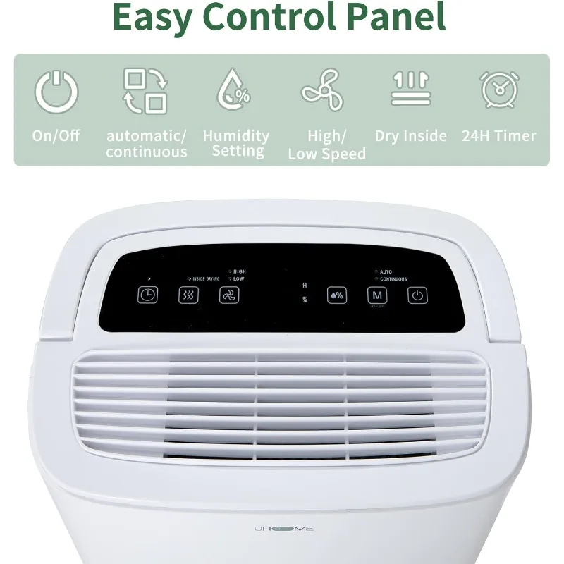 - 【6,000 Sq.Ft DEHUMIDIFIER】- Uhome dehumidifier removes up to 120 pints (under 95°F,90%RH condition) of moisture from the air a day and adjust humidity from 30% to 80% in 5% increments which is easier to maintain a ideal 45%-55% humidity for your healthy. Perfect for bathroom, basement, living room, cellar, garage, bedroom, and laundry. (Max dehumidification capacity is up to 6,000 Sq.Ft under 95°F, 90%RH condition)