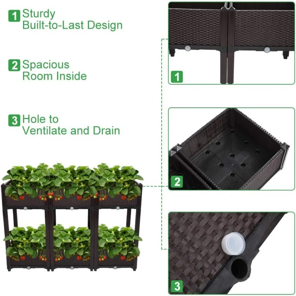 - 【Self-Watering Design】- The garden box adopts a self-watering design, helping it absorb water completely and drain extra water through drainage holes