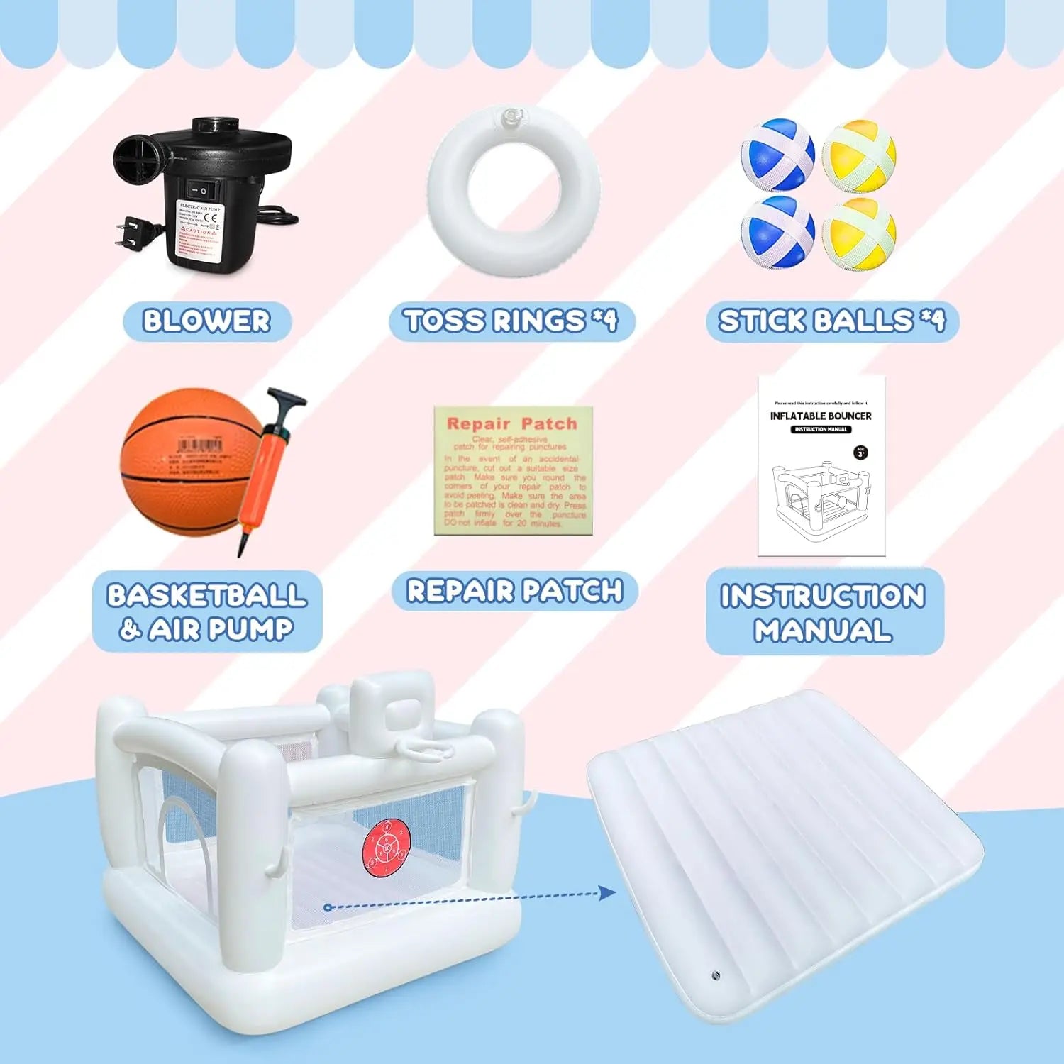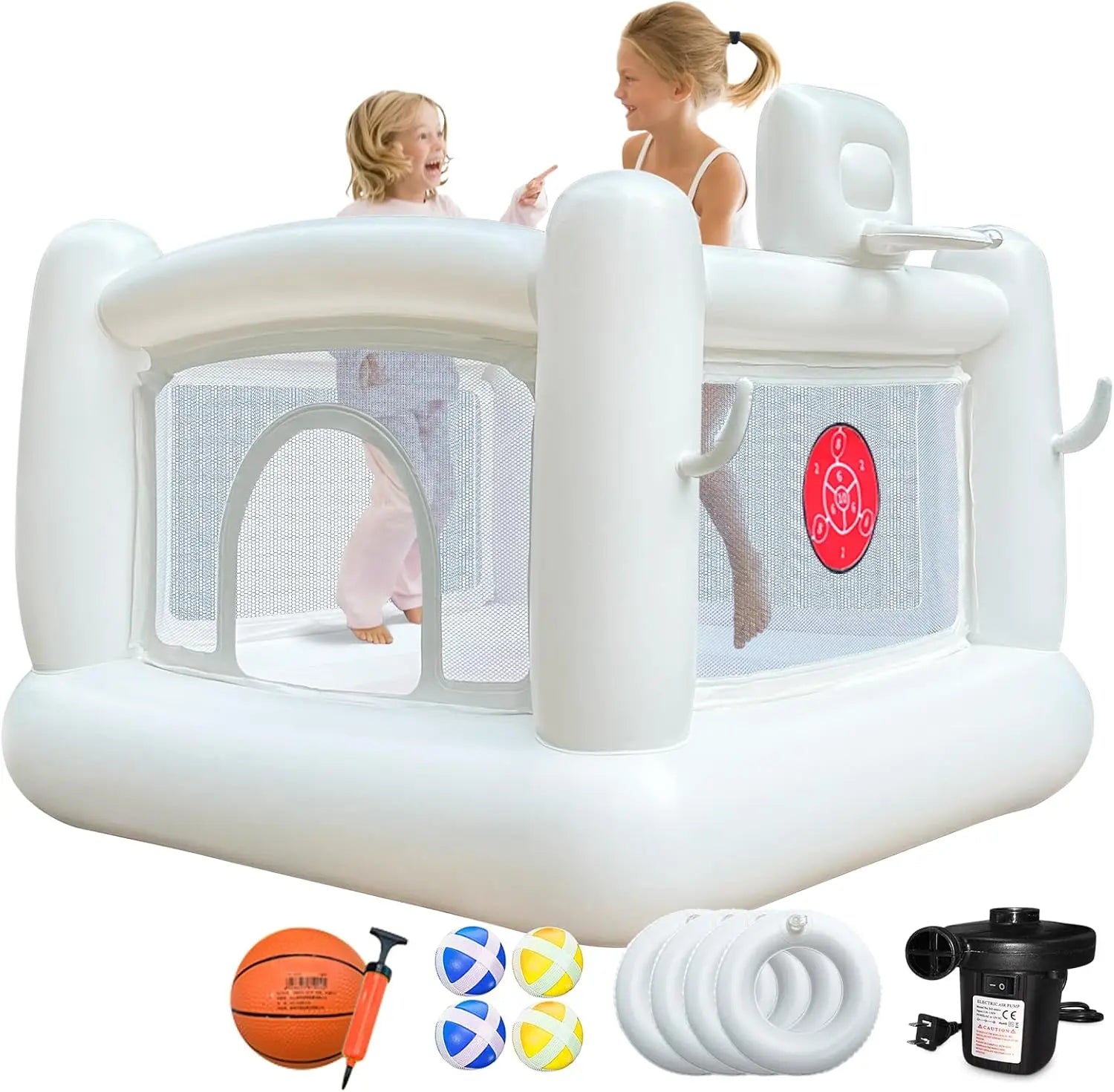 White Bounce House with Pump for Kids 3 to 6 Indoor Outdoor Fun