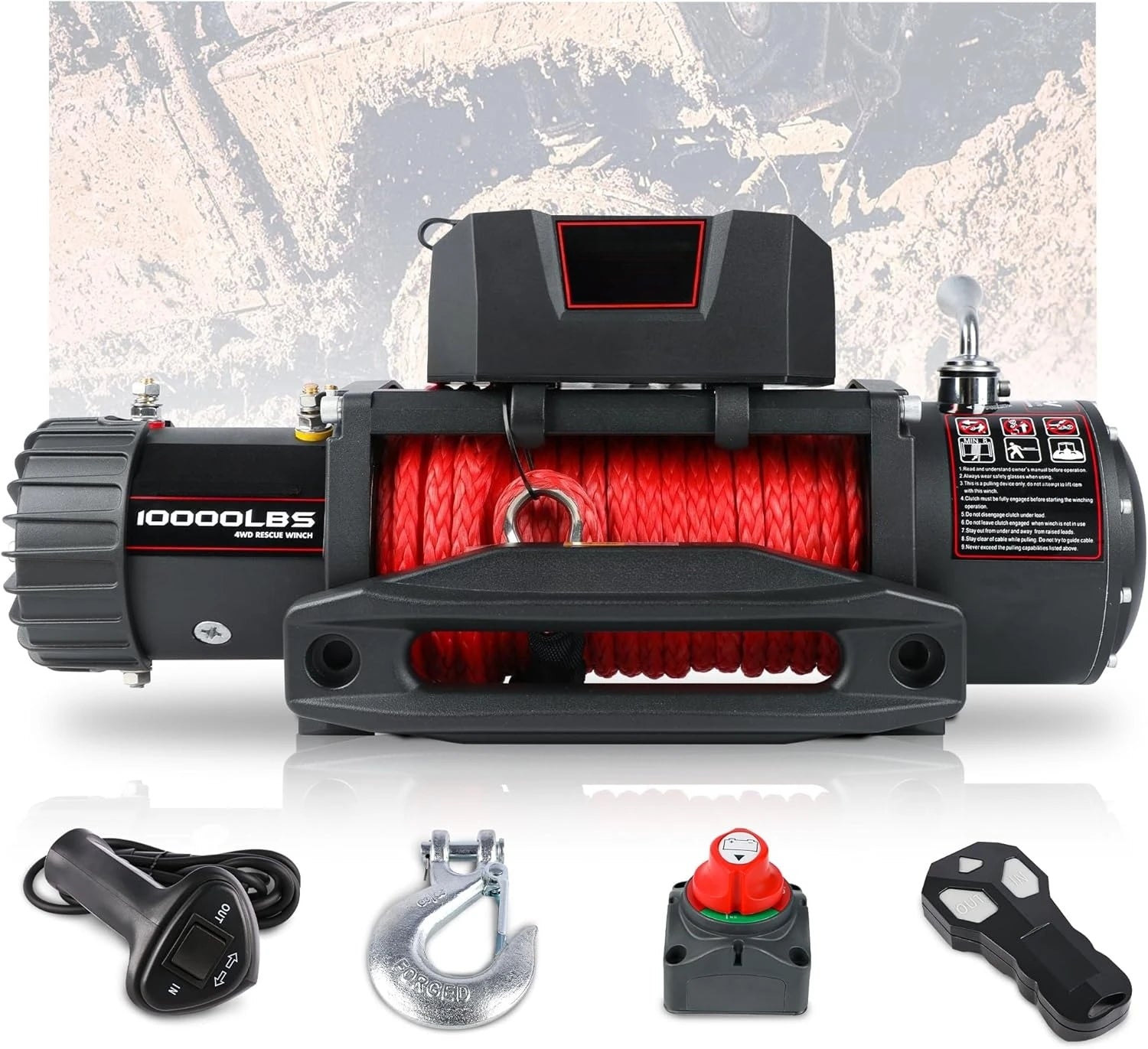Power through tough jobs with confidence with the DIY Supplies Winch 10000 Lb Electric IP67 Remotes Kit, designed for your rugged performance and dependable control in demanding environments.