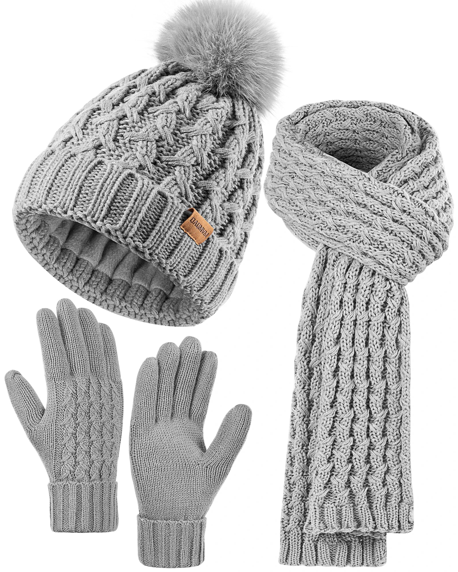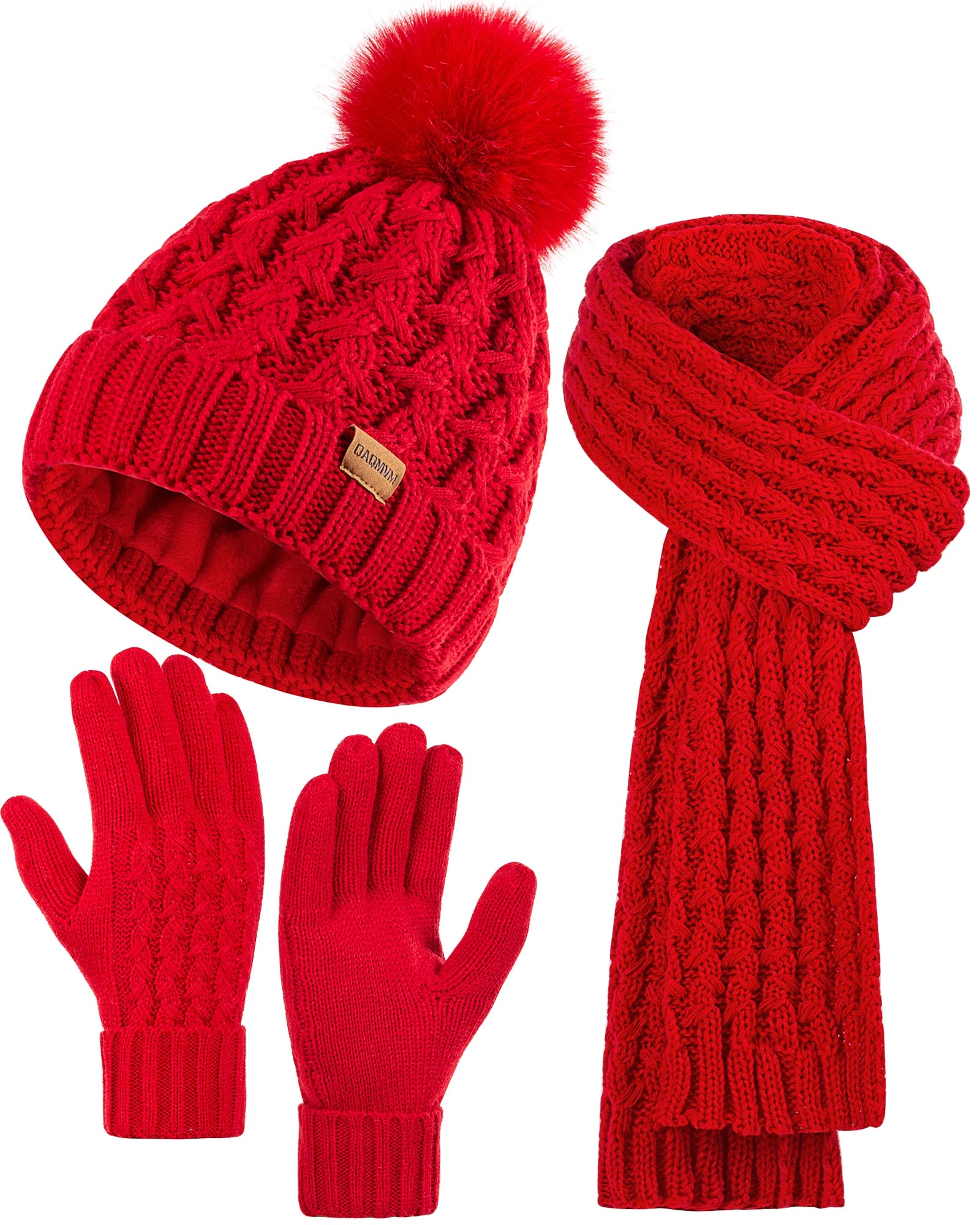 Womens Winter Beanie Hat Touchscreen Gloves Long Neck Scarf Set Warm Knit Caps