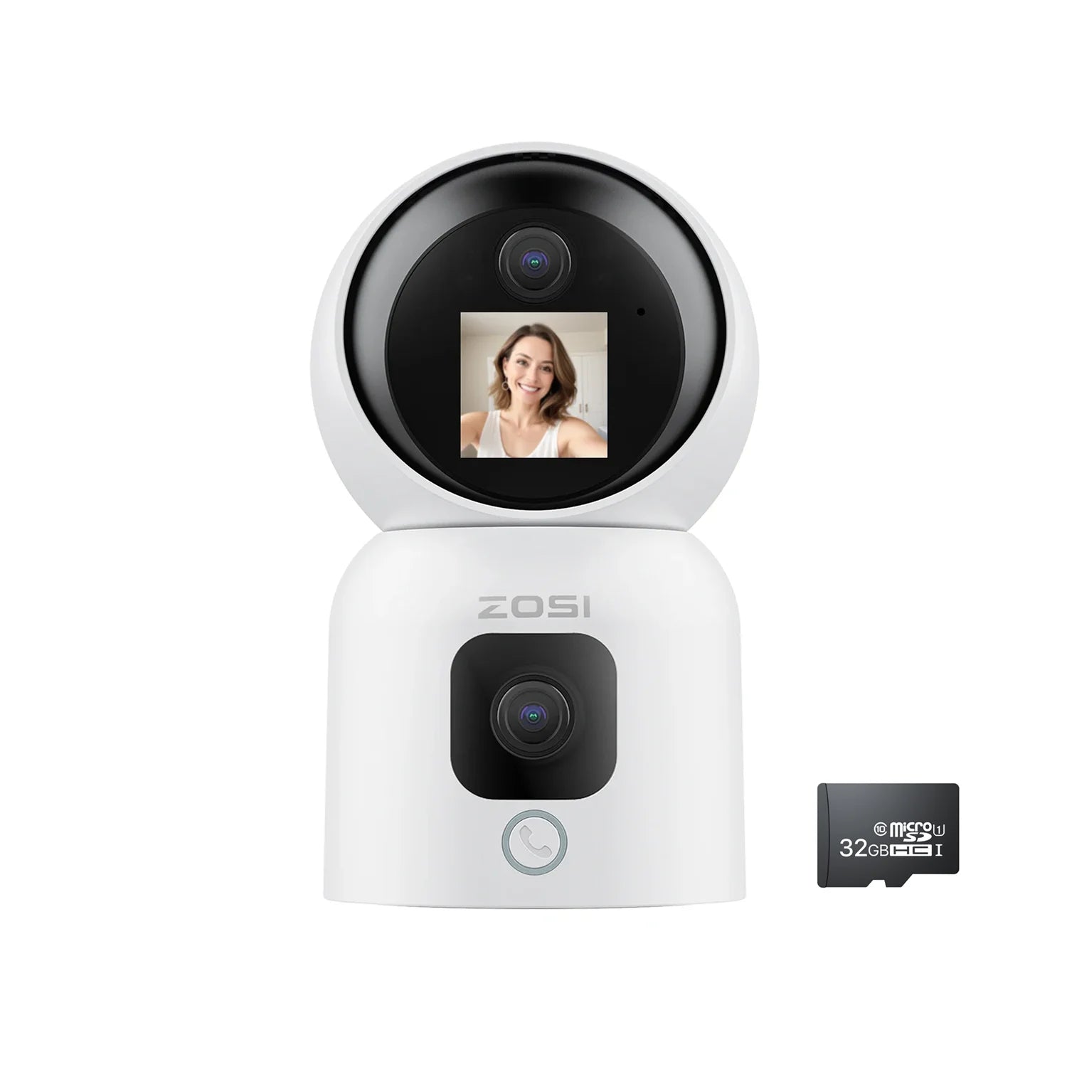 ZOSI 2K Dual-Lens Indoor WiFi Surveillance Camera, C528 Plug-in 360° Views Pan/Tilt Home Security Baby/Pet Dog Monitor, Gesture/One-Touch Calling, Human Motion Tracking, SD Card & Cloud Storage